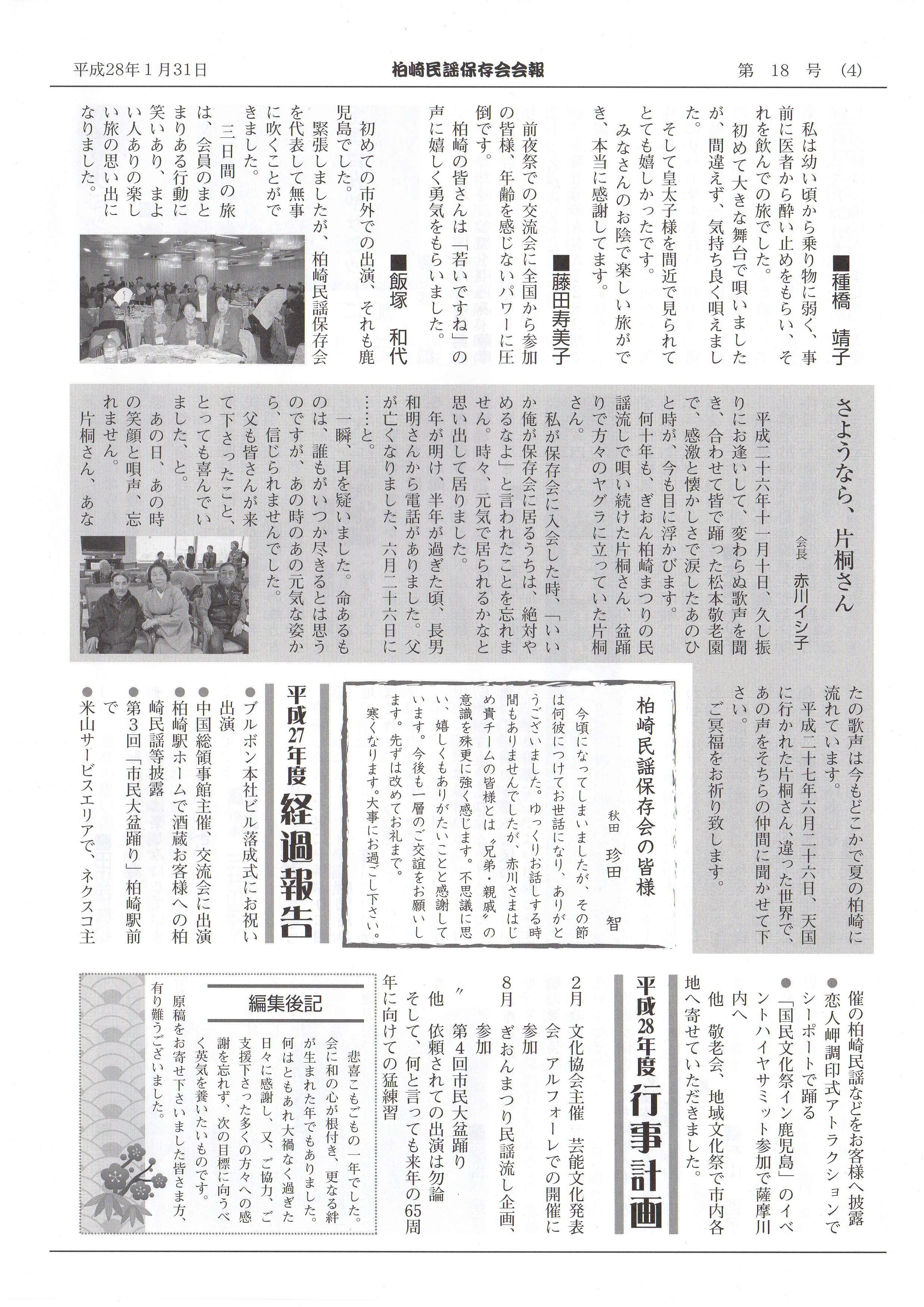 柏崎民謡保存会は1月31日に会報「和と輪」を発行しました。
