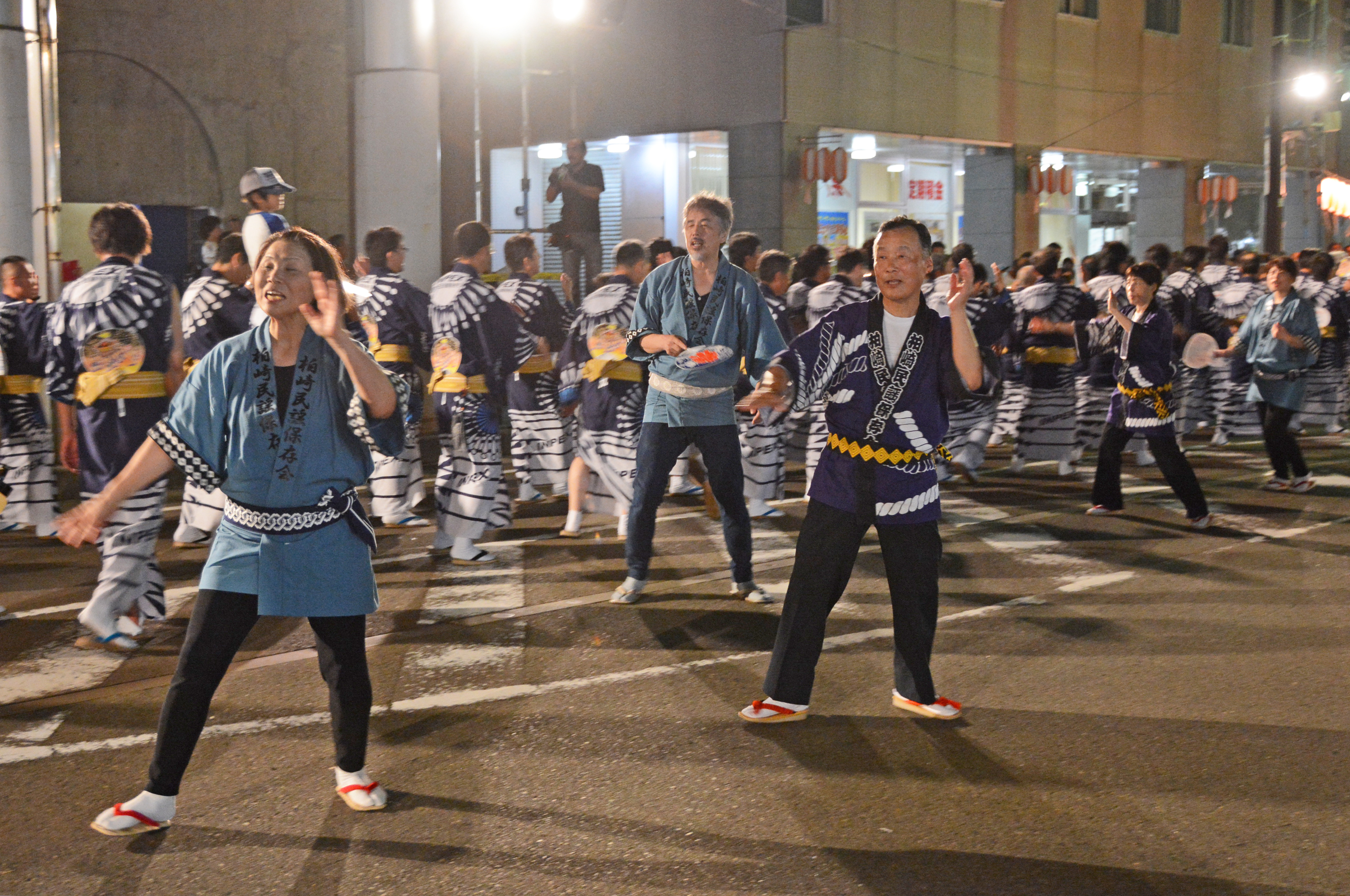 「柏崎おけさ」「三階節」 「柏崎甚句」 夏の夜の民謡絵巻が ぎおん柏崎まつりのオープニングを飾りました。参加団体50団体、参加者3700名
