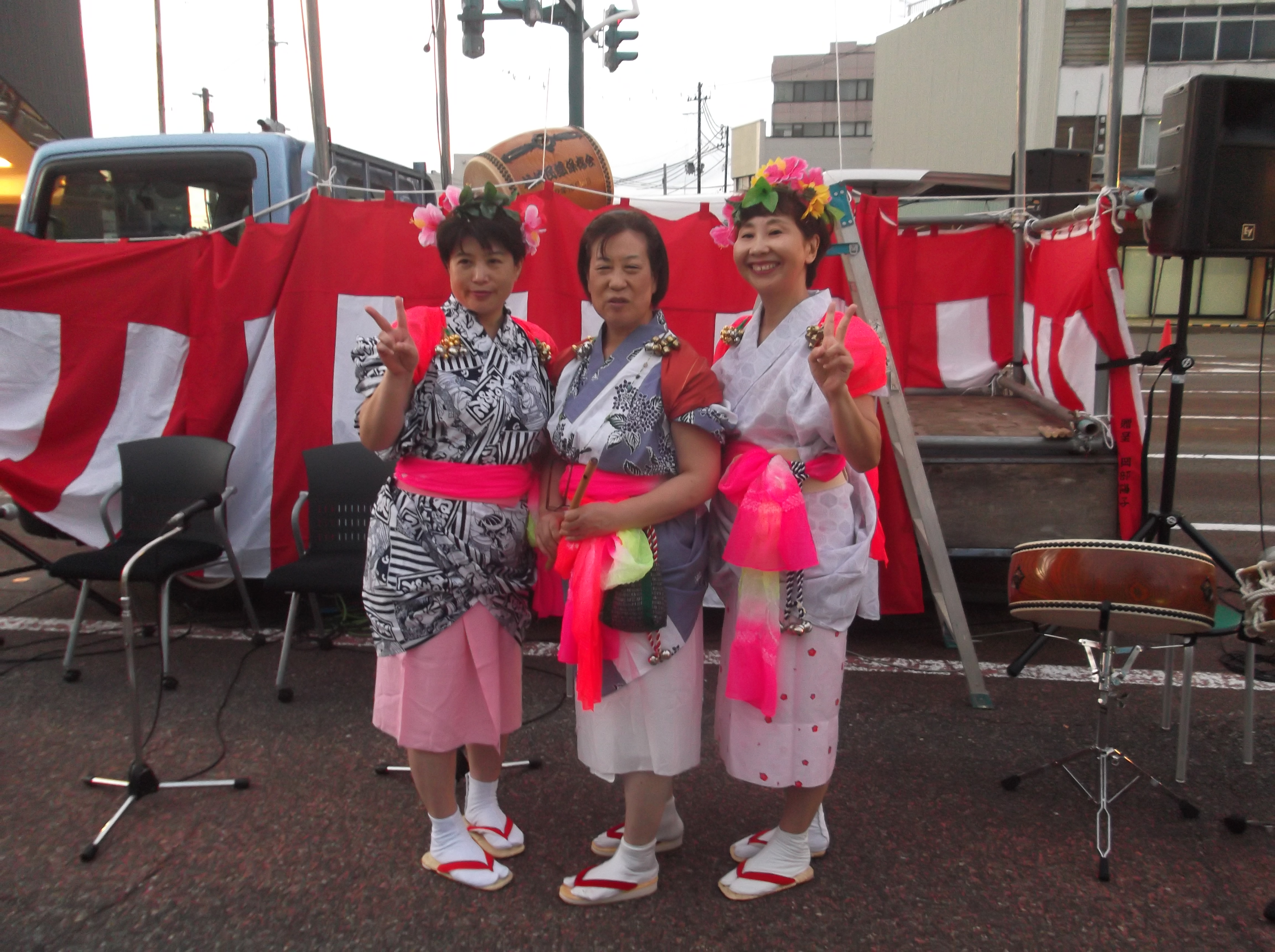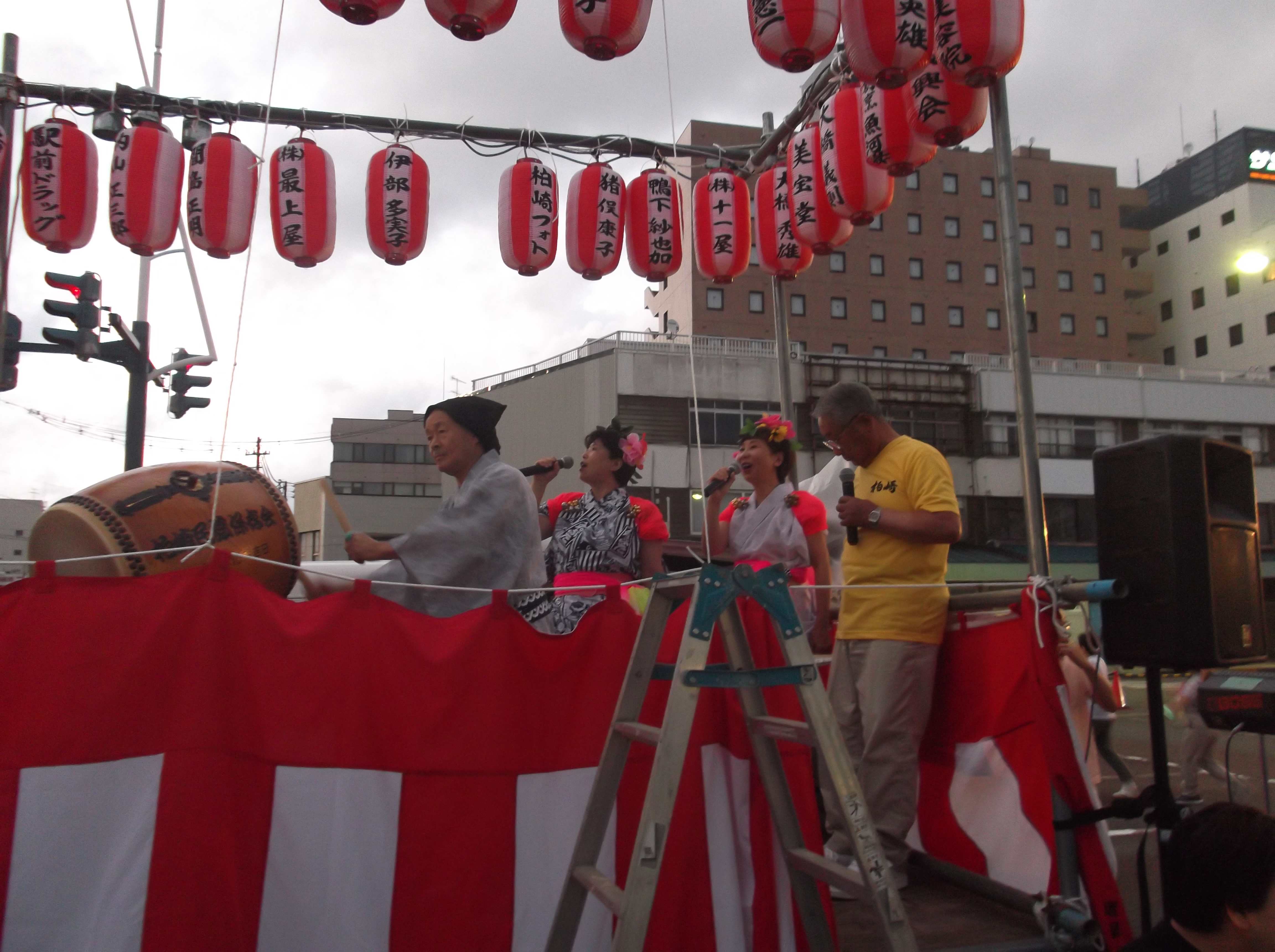 柏崎民謡保存会主催の第7回市民仮装大盆踊りが8月25日午後6時30分~8時まで柏崎駅前ロータリーで開催されました。当日は準備中に雨がぱらつきましたが、涼しい夏の夜の仮装盆踊りを大勢の人から楽しんで頂きました。