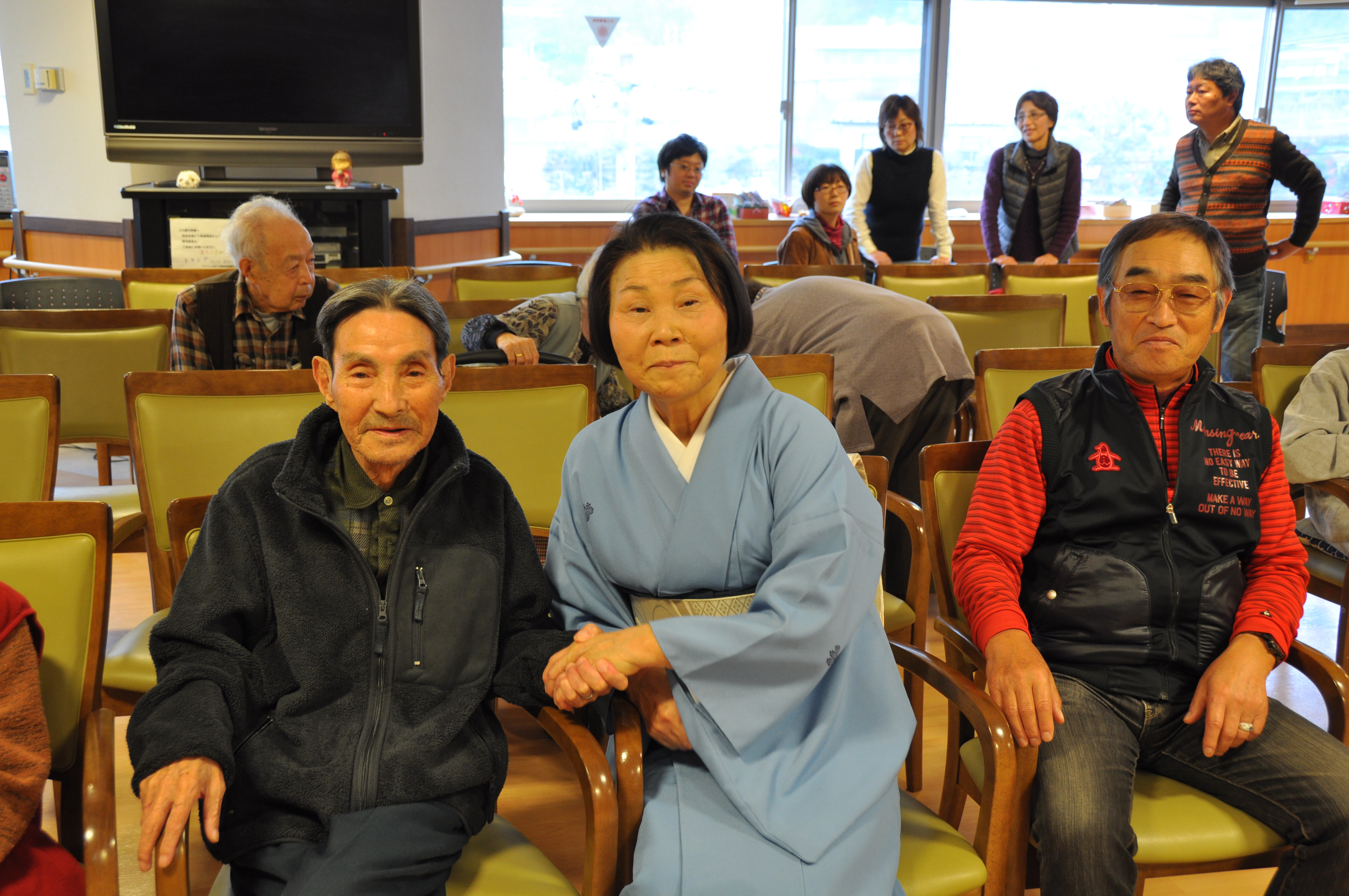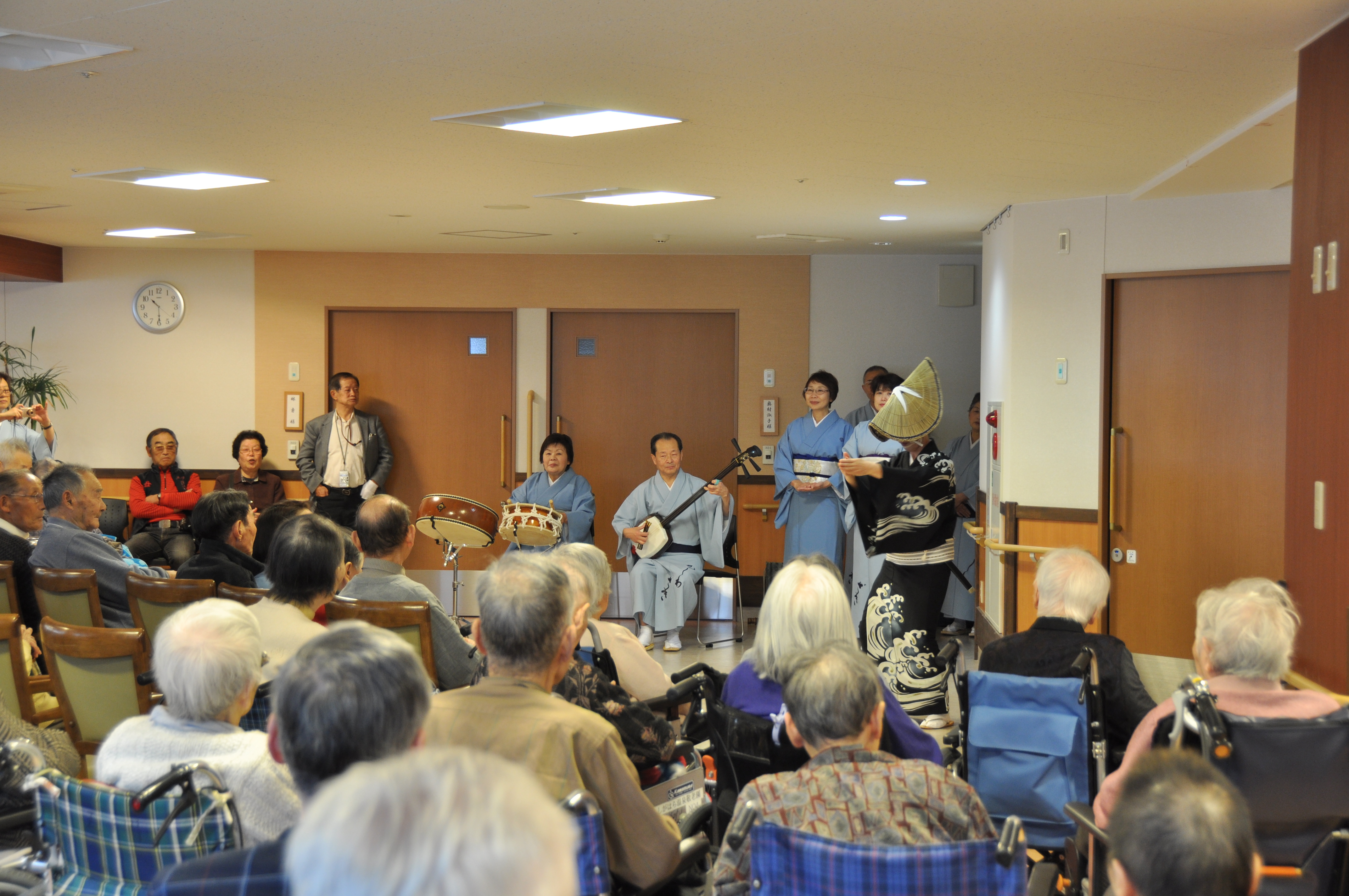 柏崎民謡保存会の地方(唄)として発足当時(昭和28年)から永年に渡り会の発展のためにご尽力いただいた片桐勝夫さんが長野県松本市にある敬老園に奥さんと一緒に入居しております。その片桐さんを訪ね励まそうと保存会の旅行を兼ねての慰問を行い、柏崎の民謡そして新潟県内の民謡を敬老園の入居者約50名の皆さんに披露いたしました。片桐さんも柏崎甚句で飛び入り参加していただき昔の声のままの声量でひときは和やかな時間を過ごしました。片桐さんがこれからも益々元気で敬老園で過ごせるよう励まして松本を後に帰柏しました。いつまでもお元気で祈念しております。