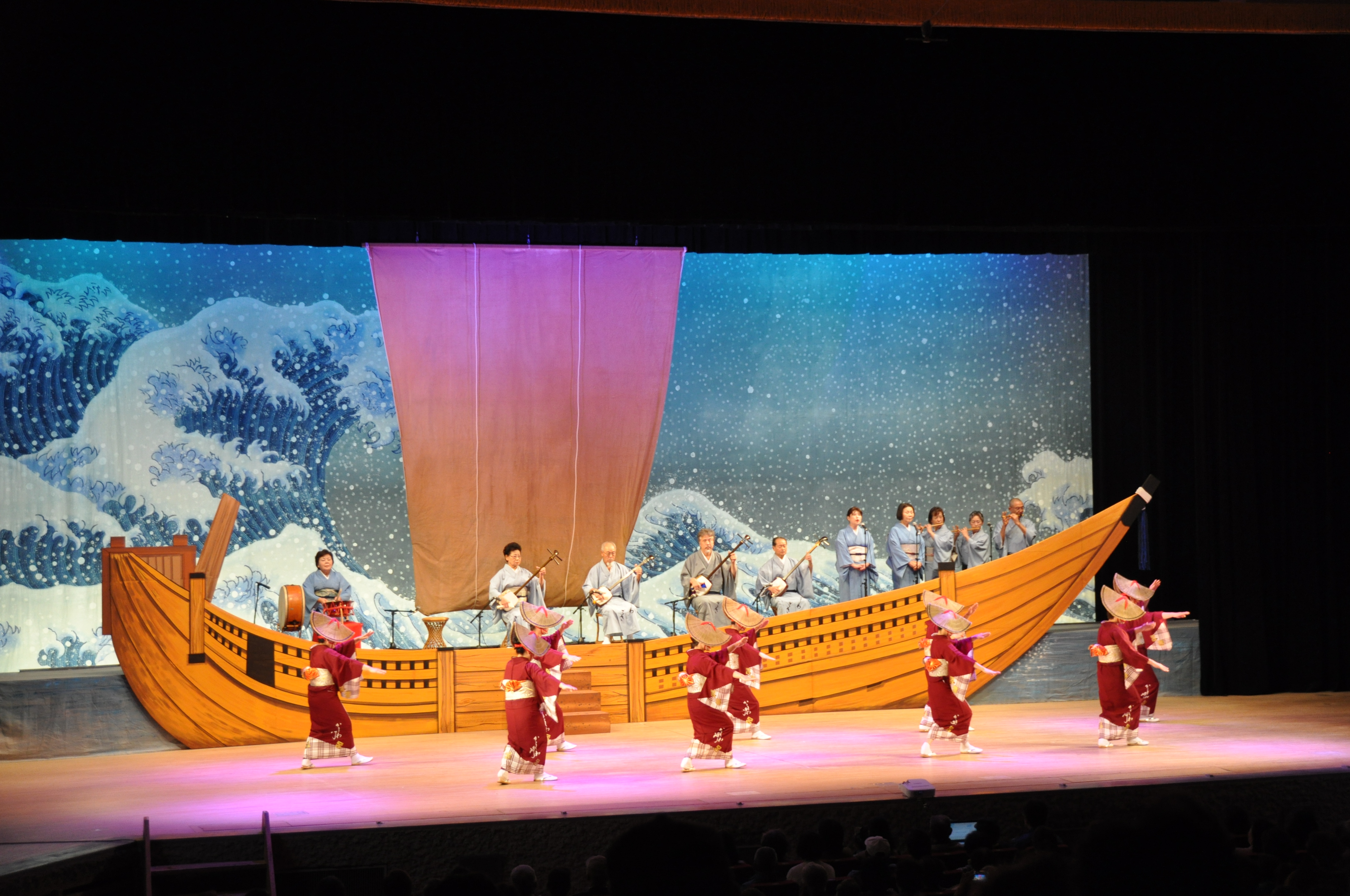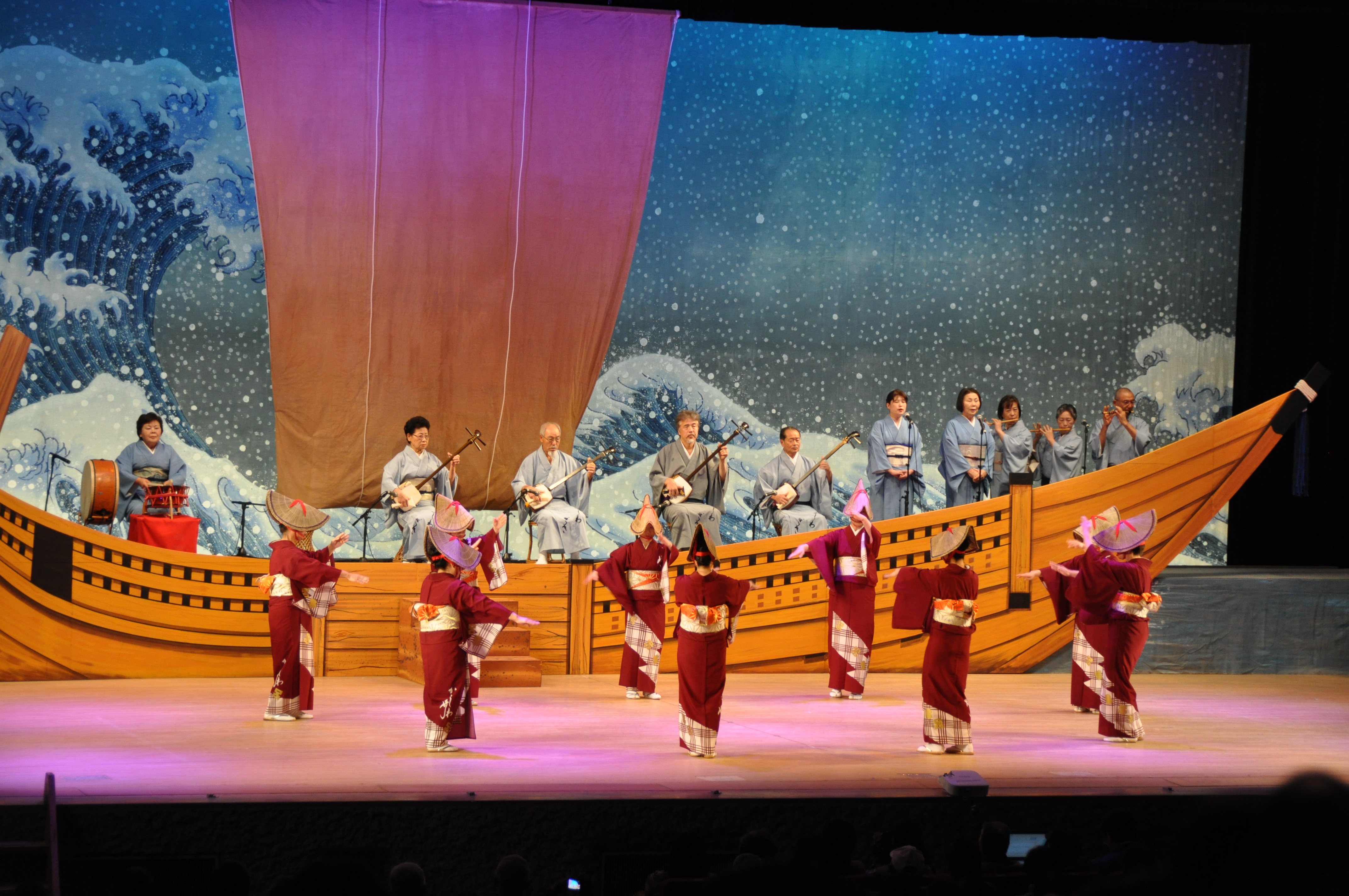 30回国民文化祭かごしま2015に参加しました。柏崎民謡保存会一行22名は10月31日に鹿児島県薩摩川内市川内文化ホールで開催の全国はんやの祭典に参加出演しました。全国に広がったはんや節、黒潮の流れに乗って、港から港へと人々によって伝わった「はんや節」系統のハイヤ、アイヤ、おけさなど12県14団体が薩摩川内の地で集結し、はんやの祭典が繰り広げられました。柏崎民謡保存会は「柏崎おけさ」を披露しました。